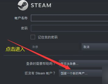 1、首先在电脑中打开Steam客户端,点击进入创建一个新的账户。