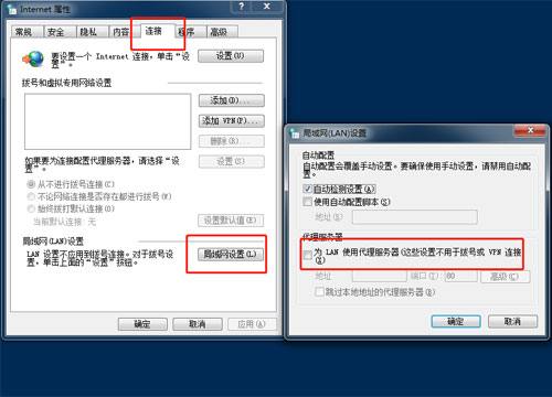 7、若为LAN使用代理服务器 未被勾选,请尝试切换 自动检测设置