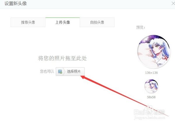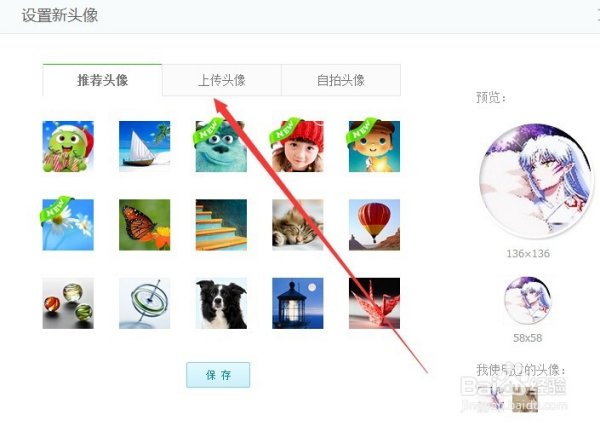 2、点击本地图片选择做为头像的图片,点击保存即可。