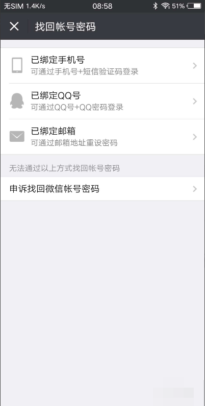 5、点击“找回账号密码”,点击“申诉找回微信账号密码”。