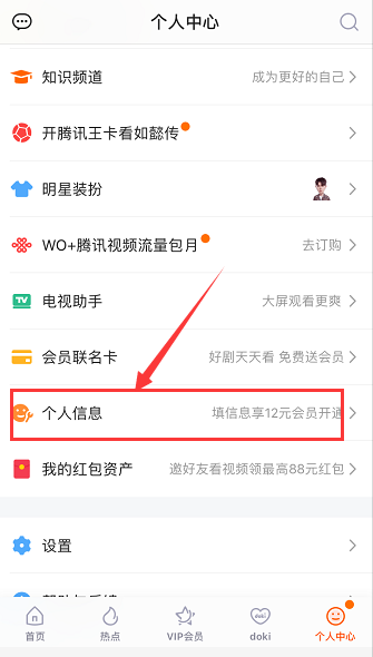 2、进入个人信息。在个人中心找到“个人信息”选项。