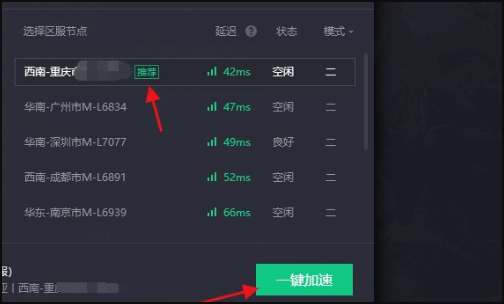 4、一般选择推荐的节点就可以,再点击智能加速。