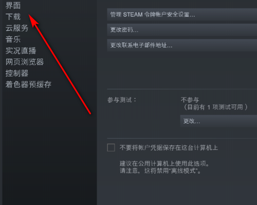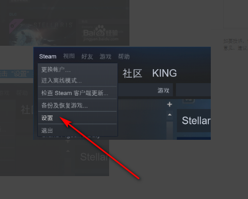 2、在弹出的菜单中,选择点击“设置”按钮,进入到steam的全局设置中。
