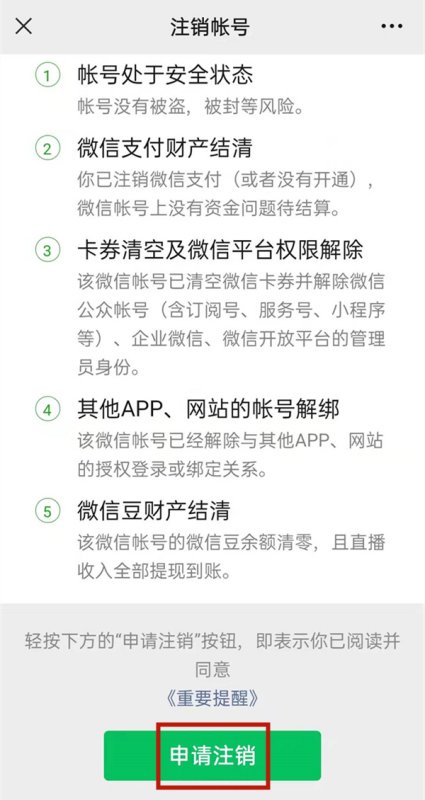 微信要顺利完成注销,也需要符合微信相关规定。