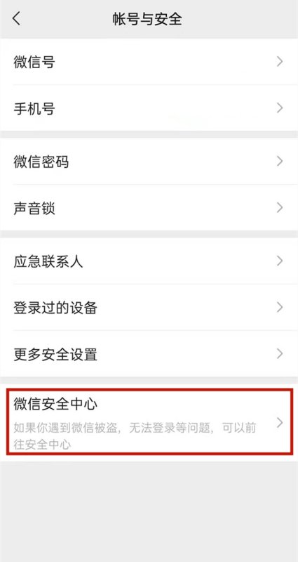 3、点击微信安全中心。
