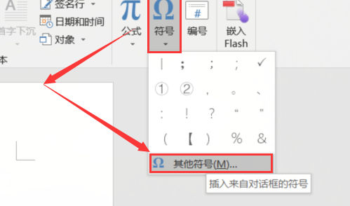 2、切换到【插入】选项卡,点击“符号”,在下拉菜单中点选“其他符号”。