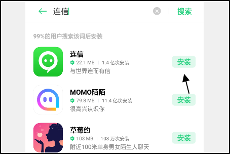 3、接下来在下方图片的界面中,点击第一个连信后面的安装按钮,进行下载安装。
