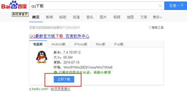 2、然后百度搜索“QQ下载”,通过界面下载QQ重新安装即可;