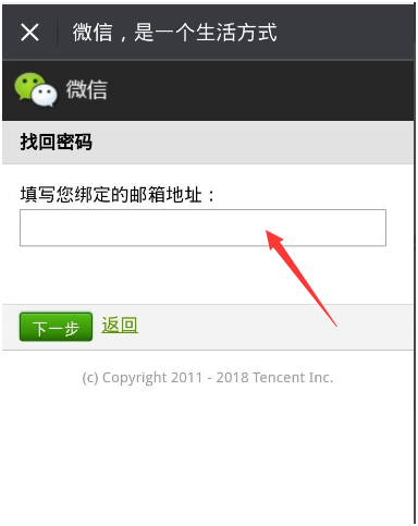 4、还可以通过邮箱进行登陆,在输入栏里舒若邮箱地址。只要通过邮箱地址重新设置微信密码就可以找回微信账号了。