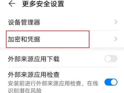 4、在【更多安全设置】页面,选择打开【加密和凭据】菜单选项,如下图所示。