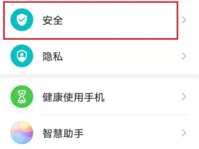 2、在打开的手机【设置】页面,选择打开【安全】菜单选项,如下图所示。