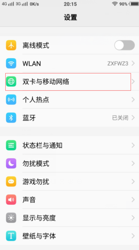 2、进入设置--双卡与移动网络--数据中切换