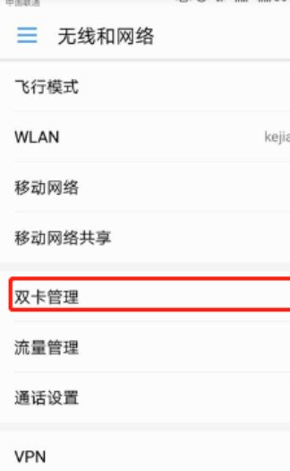 3、然后就跳转到了“无线和网络的”页面,在此页面中点击选择“双卡管理”选项。