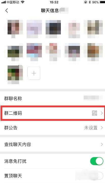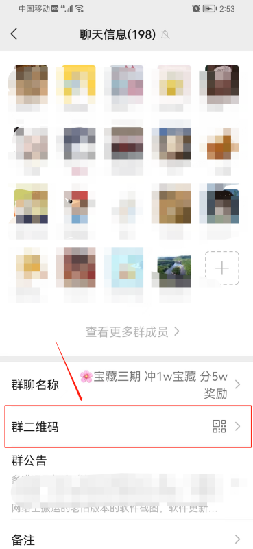 3、进入[聊天信息],点击[群二维码],他人扫[群二维码名片]即可进入该群聊。