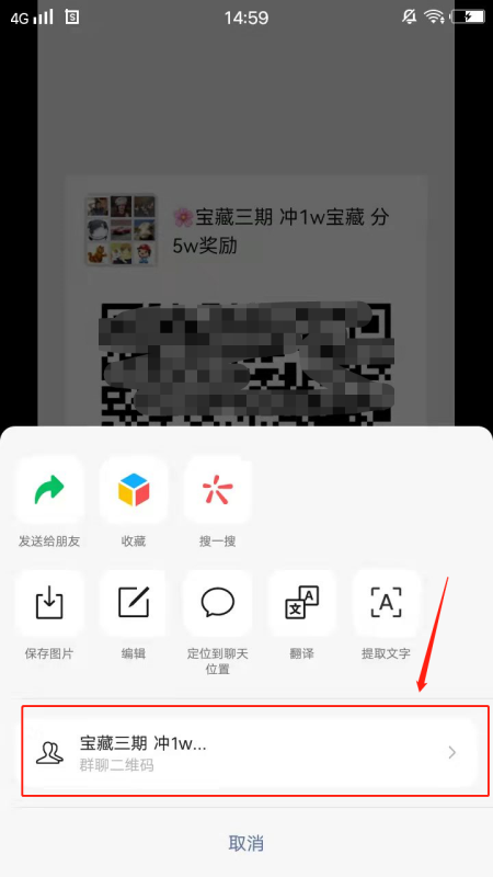 5、你接收到好友发来的图标后,打开图片再长按住,系统会自动识别这个二维码,识别出来后点击【加入群聊】就可以了。