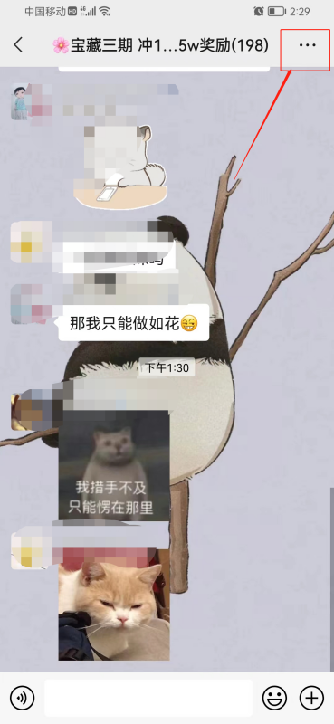 1、打开微信进入群聊天页面,点击群名称右侧的三个点点;