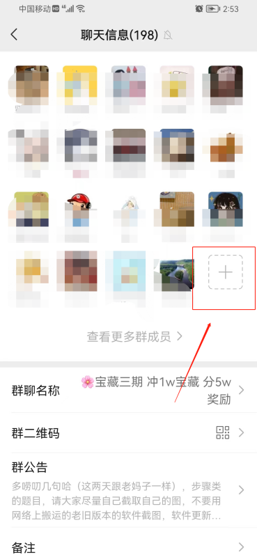 1、按照上面的步骤2进入这个页面,群成员旁边有个【+】,点击;
