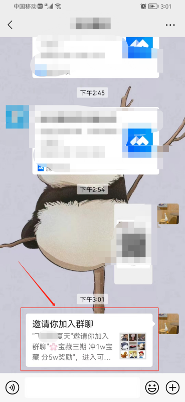 同样进入聊天记录,点击[邀请你加入群聊]就可以加入群。