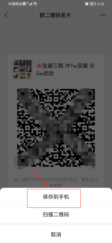 4、把二维码保存到手机,让对方发这个二维码给你。