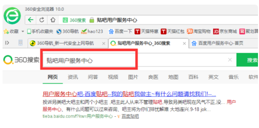 在”搜索栏“【输入】:贴吧用户服务中心