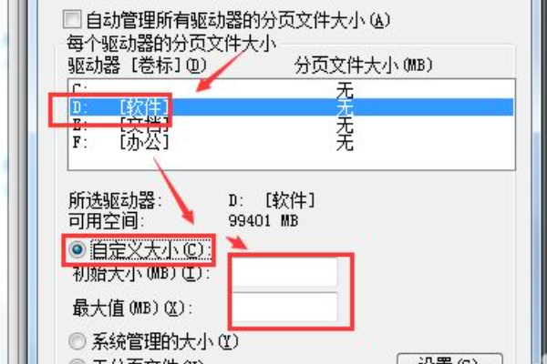 9、英雄联盟是安装在哪个盘,就选中哪个盘。点击【自定义大小】,把初始大小设置推荐数值,重启电脑后重新登录英雄联盟。