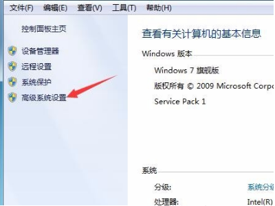 二、单击红色箭头所指的“高级系统设置”,如下图所示: