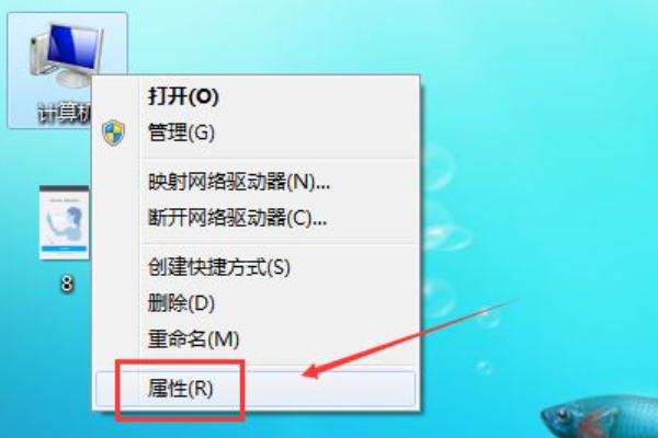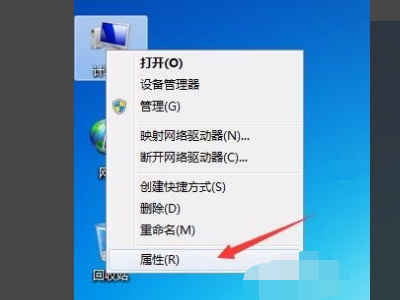 一、首先右击“计算机”,选择红色箭头所指的“属性”功能,如下图所示: