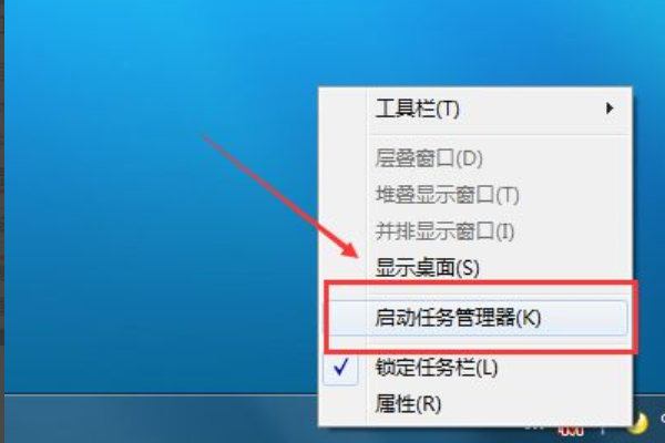 1、首先在桌面任务栏点击鼠标右键,然后点击”启动任务管理器“。