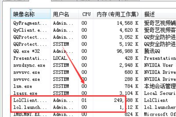 3、然后找到l开头的,可以看到有一个lolclient以及lol.launch开头的,这就是在玩英雄联盟的时候出现的进程。