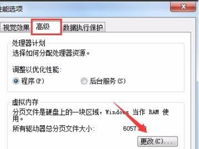 四、选择“高级”标签,然后选择“更改”,如下图所示: