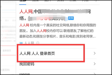 3、在搜索结果中,单击“ Renren.com”登录首页,进入登录界面。
