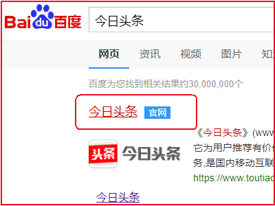 1、首先在电脑浏览器输入并搜索“今日头条”,然后点击“今日头条”的官网。