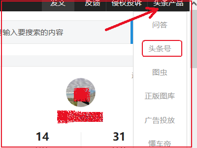 4、点击右上角的“头条产品”,然后选择“头条号”。