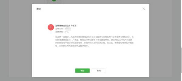 3、注册的最后一步就是填写运营主体,需要填写个人身份证号和姓名,并且需要绑定了这个身份证的微信确认信息。如果是企业,需要填写营业执照上面的数字,并且只能是法人确认信息。