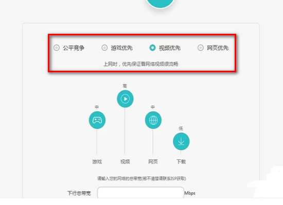 4、设置完之后,选择“智能宽带”设置,选择上网的模式,根据你使用电脑的用途来分配一下网速。