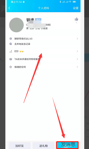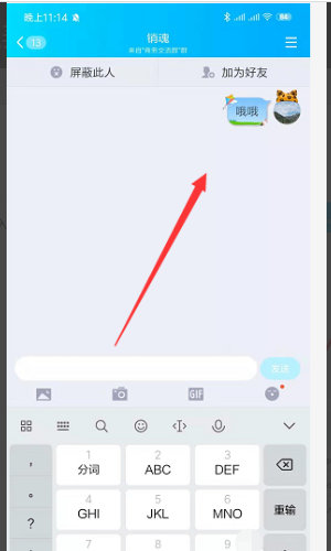 7、如果对方没有设置屏蔽临时会话,就会进入到与对方的聊天界面中,然后发送文件或者聊天就可以了。