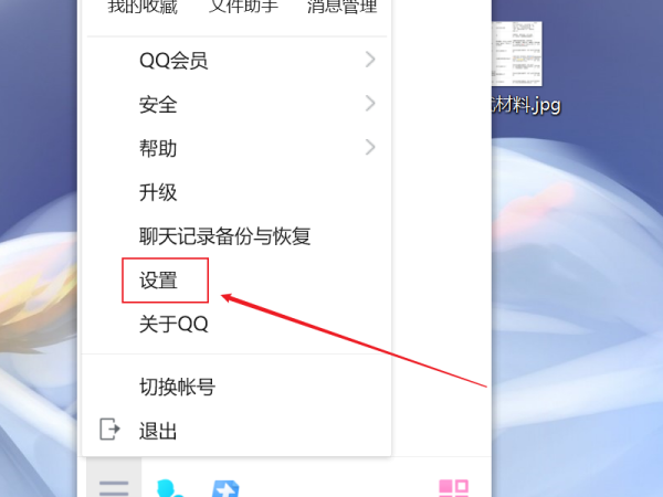 2、在弹出的菜单中,点击设置,进入qq设置页面。