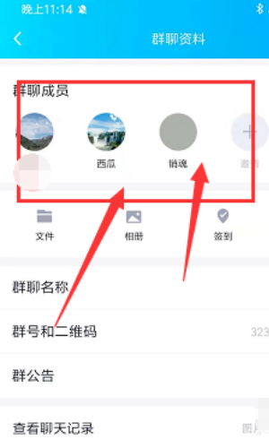4、进入到群组后,选择右侧的菜单栏,点击打开。