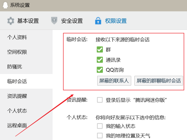 1.打开想要屏蔽掉临时会话的群,在右侧群成员中,双击某非好友群成员,建立一个临时会话。 2.从弹出菜单中,选择“屏蔽此来源”,在弹出提示信息框中,点击“确定”,即可完成对该群临时会话的屏蔽。若只想屏蔽一个人,可选择“屏蔽此人”。 3.若想解除屏蔽,在系统设置->权限设置->临时会话->屏蔽会话管理->解除屏蔽,即可。标签:腾讯QQ