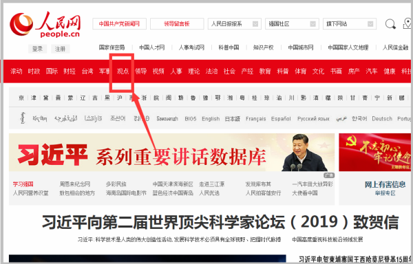 3、在人民日报官方网站里找到观点的图标,如下图所示;