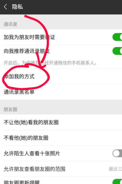4、在隐私页找到“添加我的方式”,点“添加我的方式”。
