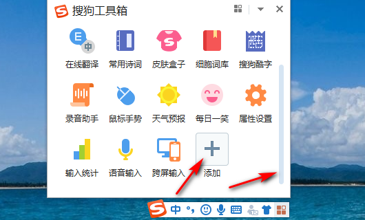进入搜狗工具箱,下拉到下面,就可以看到添加图标。