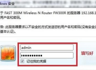 2、打开192.168.1.1之后,会出现Windows的安全窗口,可以在此窗口使用默认的用户名密码登录进入。