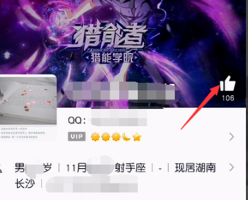 4、会进入我的个人中心页面,点击我的QQ会员名右侧的赞图标。