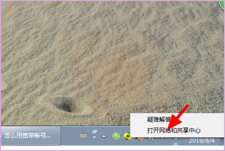 1、首先打开电脑,右键单击右下角的网络图标选择打开“打开网络和共享中心”。