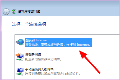 3、然后在弹出来的窗口中选择“连接到 Internet”,点击下一步。
