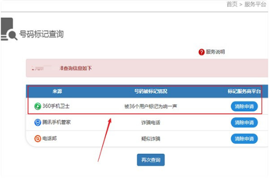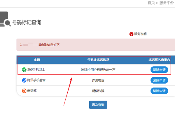 如需取消号码标记,建议您登录中国信息通信研究院码号服务平台,点击“号码误标记清除”,并正确填写号码、用户姓名、开户证件类型、证件号码、开户时间等信息,完成号码标记查询、误标记自动取消等一站式操作,无需再与标记服务企业逐一申请。