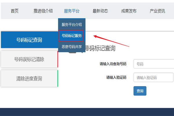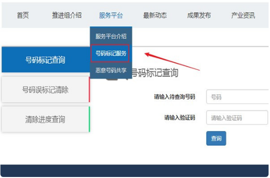3、进入到号码标记服务平台点击服务平台下方的号码标记服务.