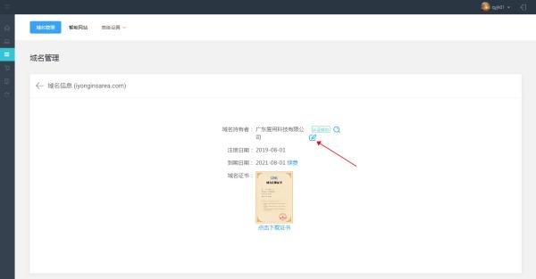2、外部注册的域名托管至爱用的域名(DNS添加方式)不能修改注册信息,用户需提交域名转入。