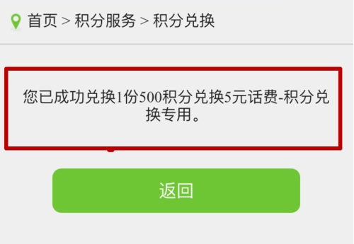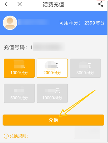 2、兑换规则:1000积分起兑,分为5个兑换档次,兑换话费金额上不封顶。